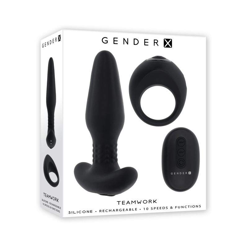 A powerful duo of vibrating remote-control toys designed for multiple possibilities. Supple and smooth, the plug tapers to a rounded, textured tip and finishes with rumbling, rotating beads at the neck before widening to a safety base handle. The ABS ring is chunky on top and narrows at the bottom curve for maximum comfort. Each 10-speed shape is independently controlled for a custom experience.