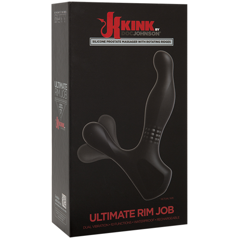 Take prostate play to another level. Designed to be the ultimate anal vibe for men, this penetrates deep to stimulate multiple areas with sleek premium silicone, anatomical contours, strong rumbling vibrations, and powerful spinning ridges perfectly placed for extreme ass-rimming action. Separate controls with individualized modes for each point of stimulation—the 10-function vibrating shaft, 10-function vibrating perineum stimulator, and 3-speed multi-direction rotating ridges—customize your experience every time. Measures 5 in. insertable, 1.25 in. wide.